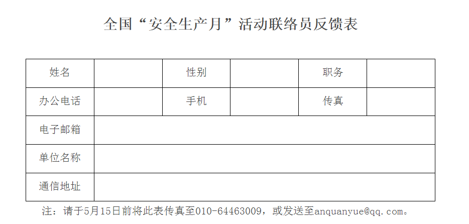 附件:全国“安全生产月”活动联络员反馈表