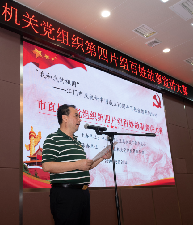 来自片组15个单位的参赛选手以“我和我的祖国·践行新思想 同筑中国梦”为主题,结合自己的工作实际、亲身经历和学习见闻,以“讲故事”为主要形式,娓娓讲述了个人、家庭、企业实业报国、爱岗敬业、生态文明、孝亲友善等故事,以及改革开放历程中,伴随国家强大共同成长的创业史、奋斗史和亲身经历的折射新中国富强、民主、文明、和谐的生活故事。其中江门出入境边防检查站的选手讲述了他们用65秒在火海中勇救46名小学生的故事;市公安局的选手向大家讲述了交警支队法医陈春霞20年如一日坚守岗位的故事;市应急管理局的选手讲述了市森林消防大队队员艰苦奉献的故事;市水利局的选手讲述了水利局退休干部梁乃强同志坚守一线,在抗台风中为保障群众生命财产安全奋不顾身的事迹;市自然资源局的选手讲述了全国绿化奖章获得者市林业科学研究所高级工程师税珺同志醉心于林业科研工作,为全市林业科研作贡献的故事。他们的故事,集中反映了侨乡人民的爱国之情、强国之志和报国之行,从不同侧面描绘出一幅幅新时代侨乡人民把个人理想追求融入国家和民族事业当中,融入到江门侨乡改革发展各项事业当中,为建设幸福美丽侨乡,实现中华民族伟大复兴的中国梦而努力奋斗的生动画卷,博得了现场阵阵热烈的掌声。