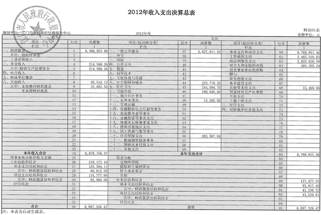 开云电竞官方网站行政服务中心2012年收入支出决算总表