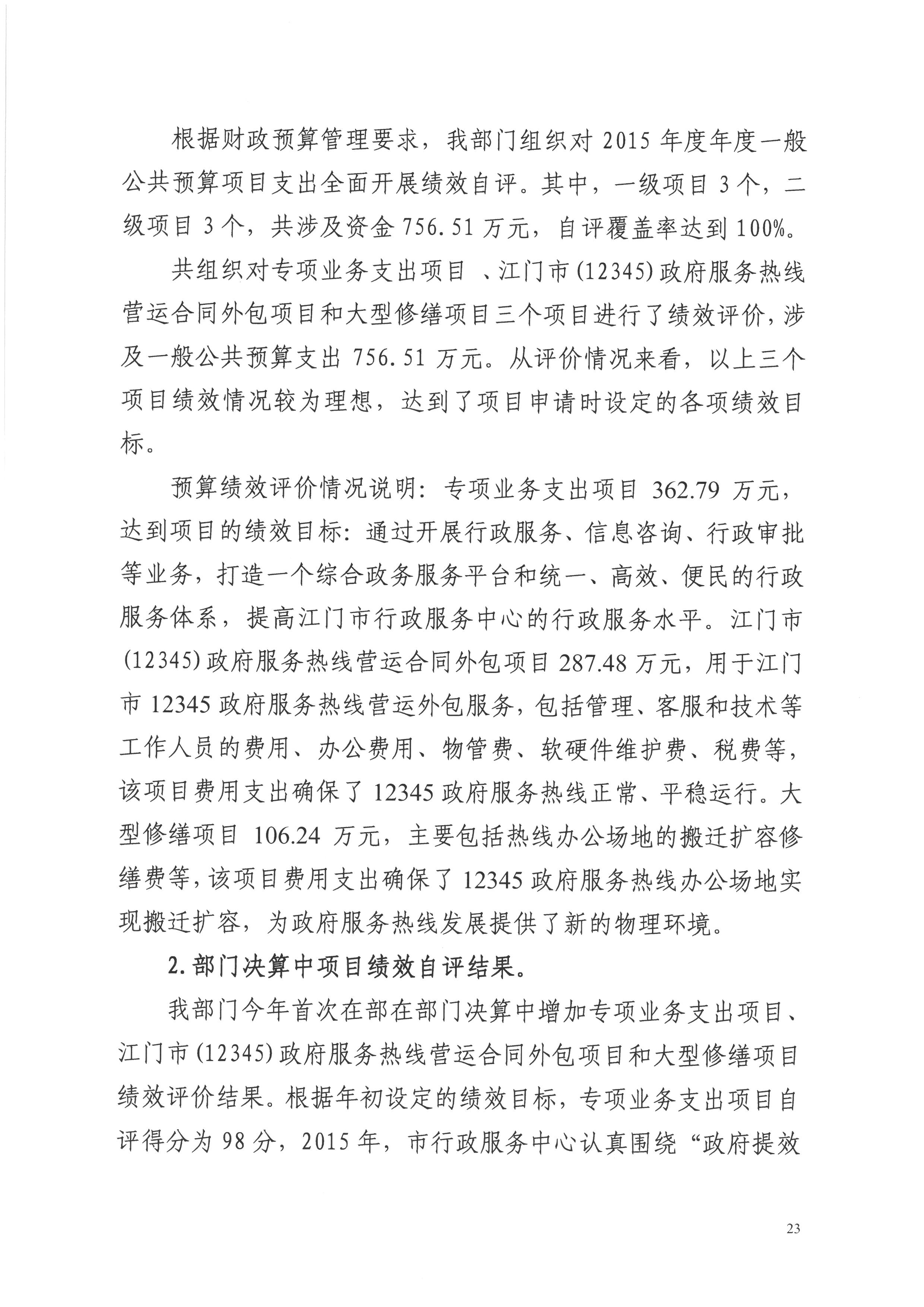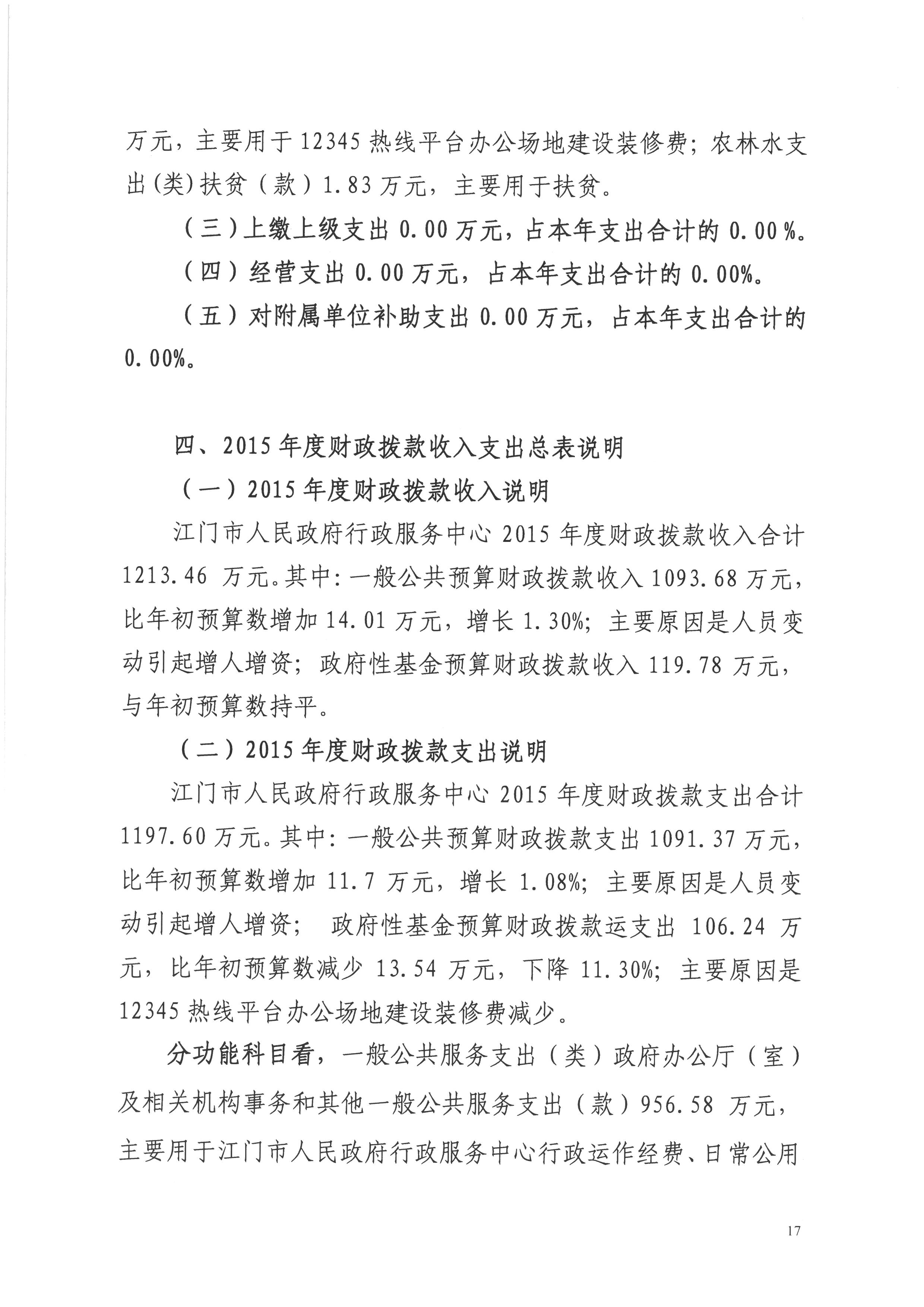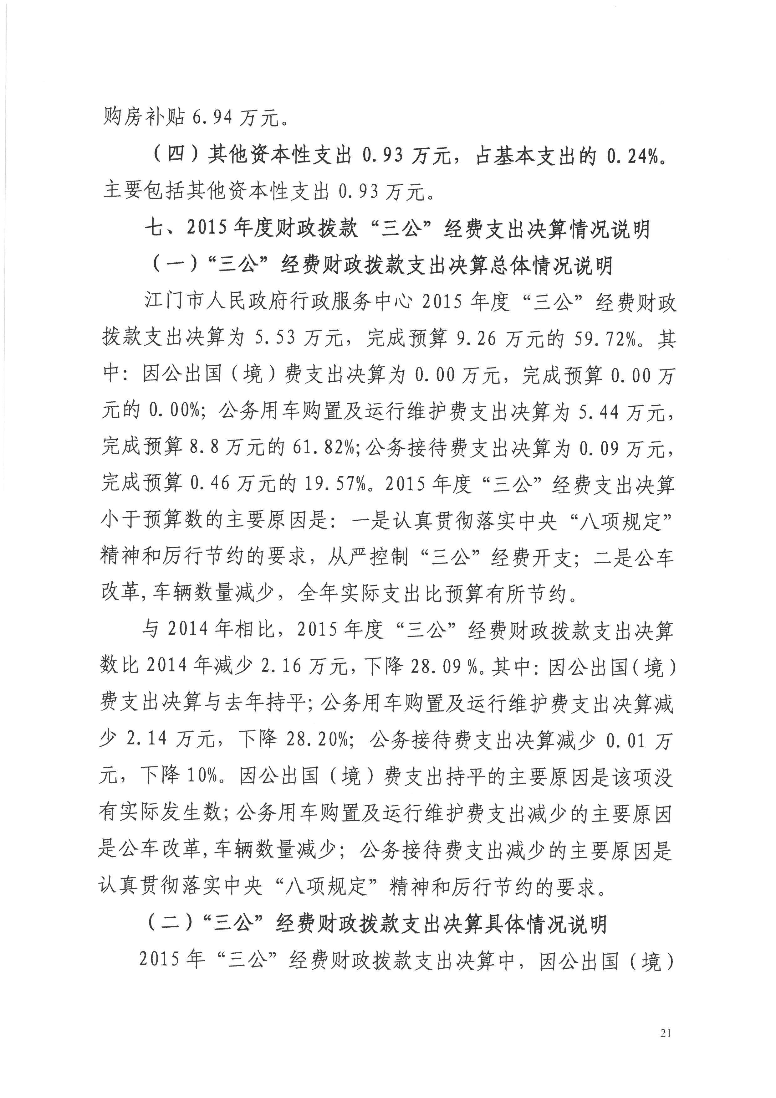 2015年度开云电竞官方网站人民政府行政服务中心决算
