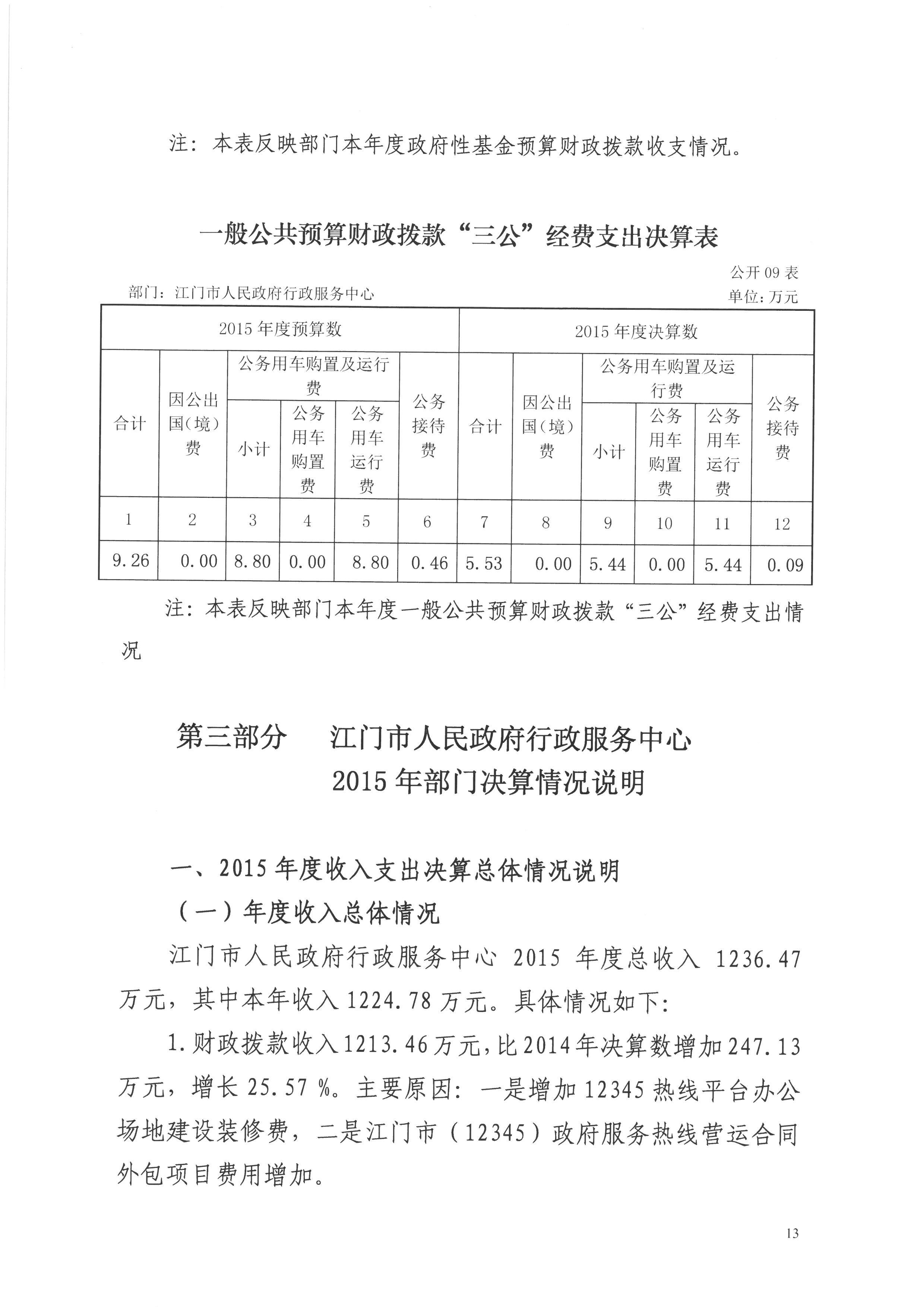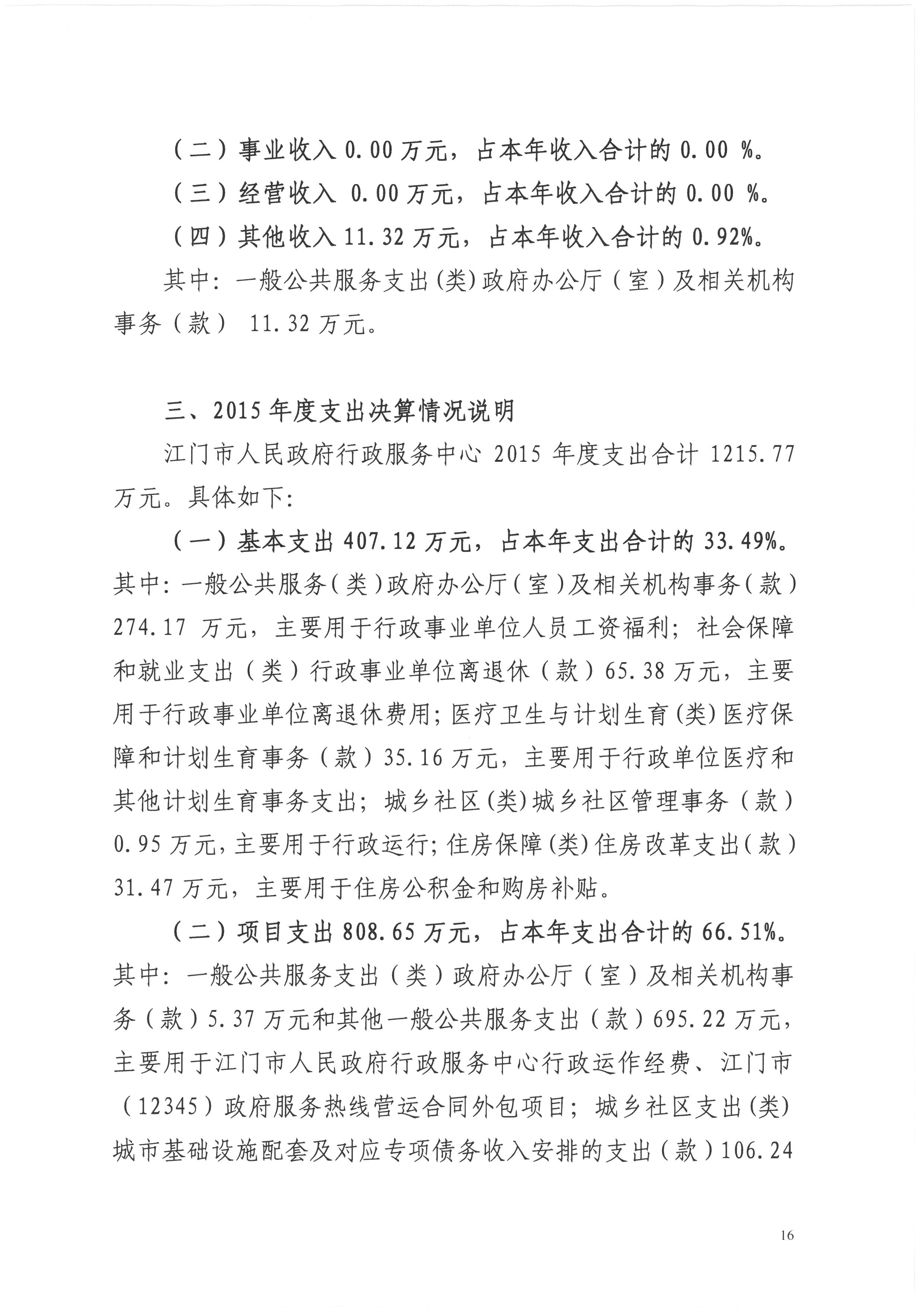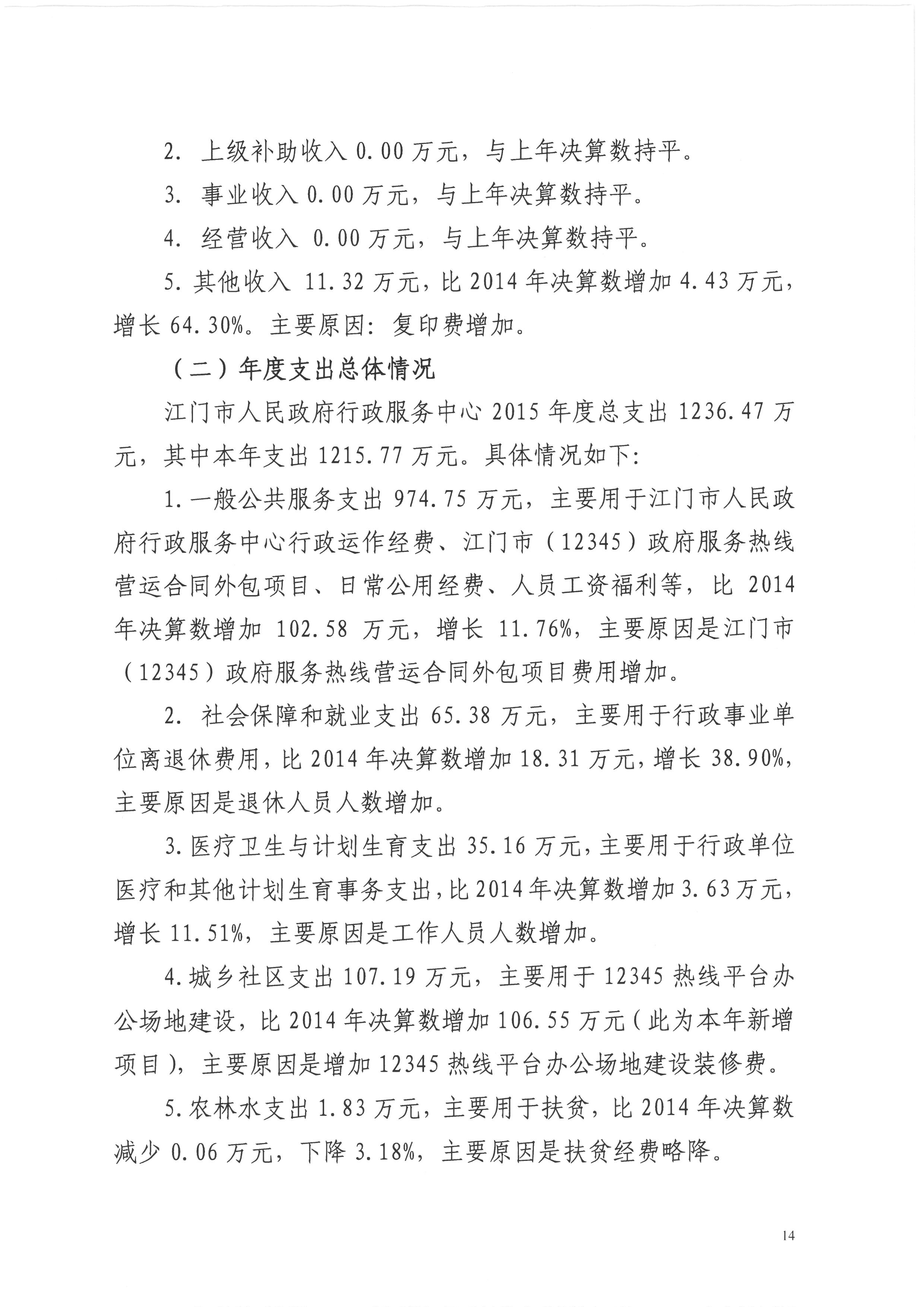 2015年度开云电竞官方网站人民政府行政服务中心决算