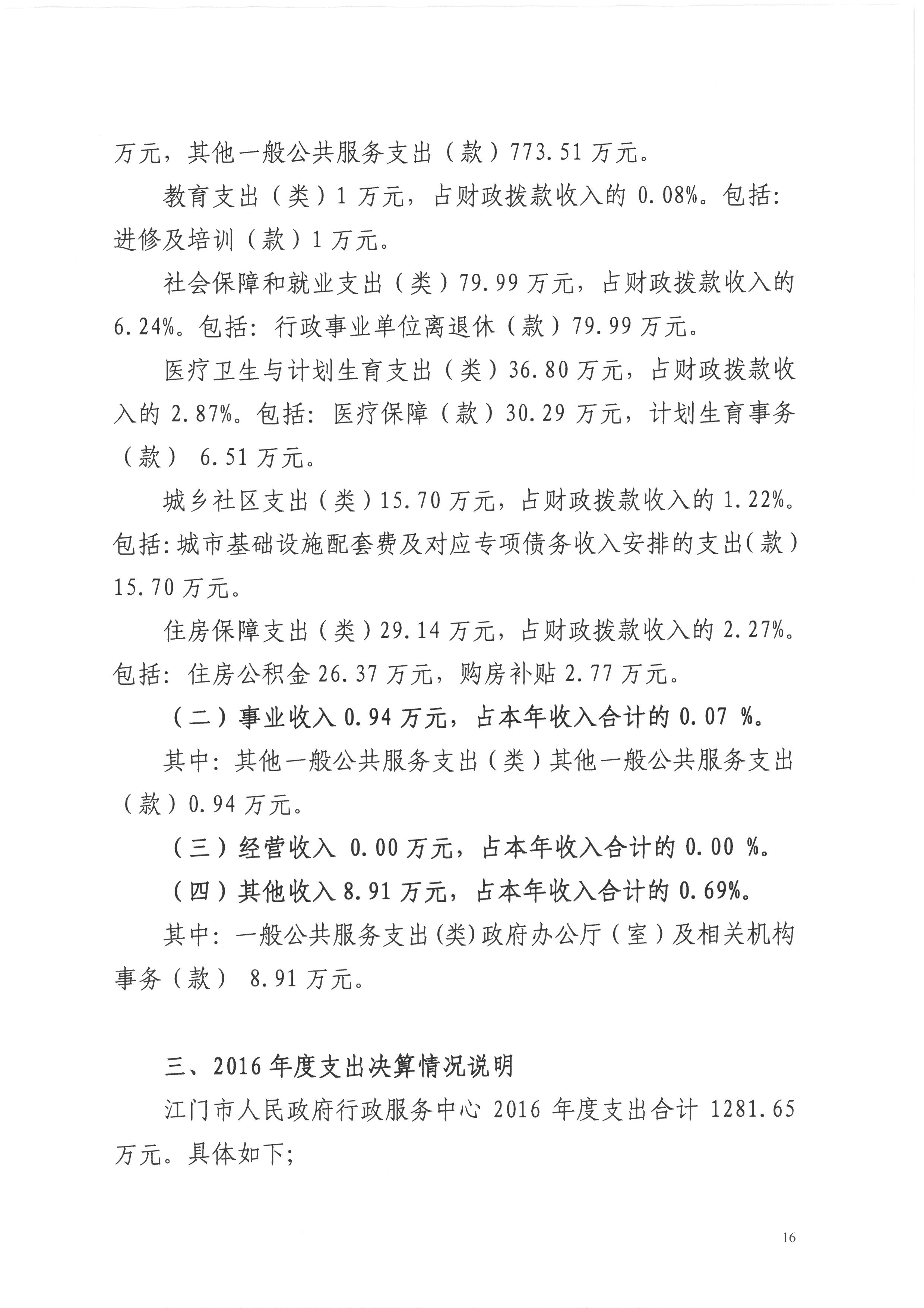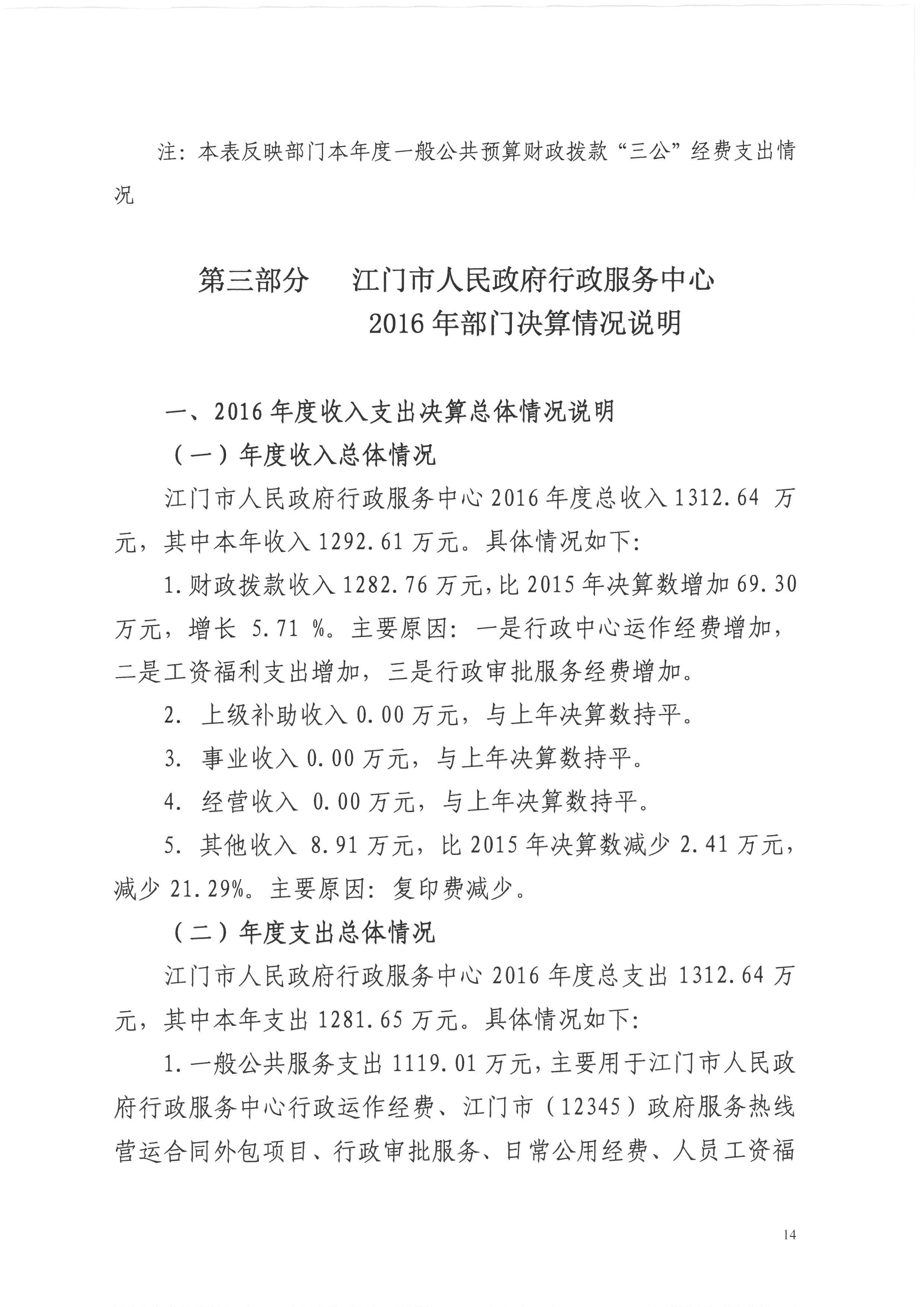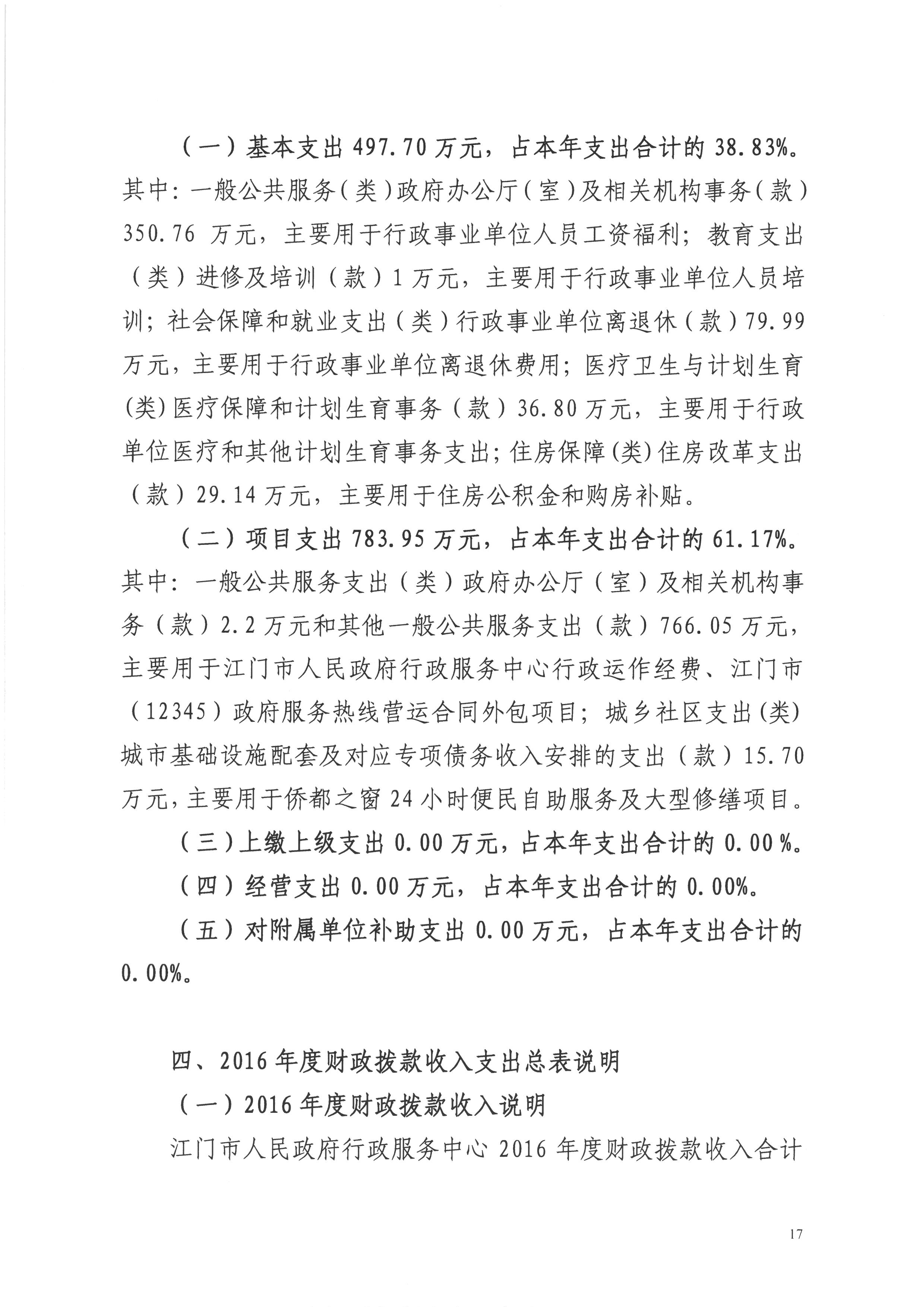 2016年度开云电竞官方网站人民政府行政服务中心决算