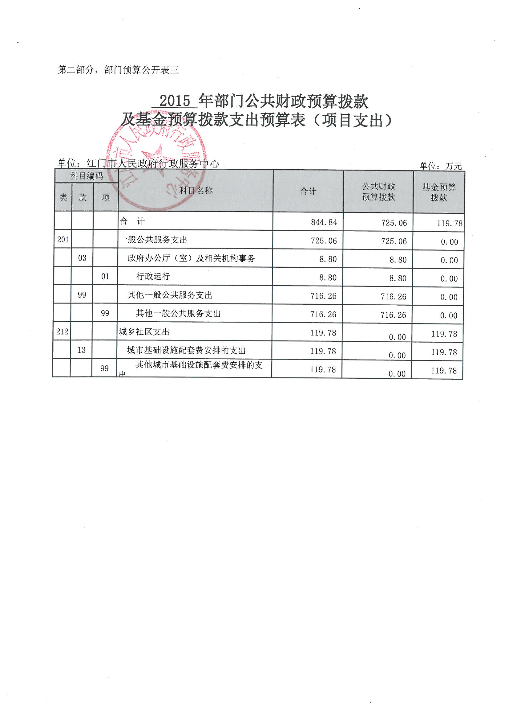 第一部分 2015年开云电竞官方网站人民政府行政服务中心预算