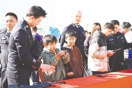 当天还举办警营开放日活动,设置了警察节打卡点、警车展区、枪械展区和宣传摊位。民辅警热情向家属群众普及公安业务知识与安全防护常识,威风凛凛的装甲车与铁骑整齐列阵,各类枪械有序排放,吸引了大量家属群众驻足观赏、拍照留念。