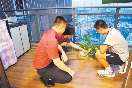 在碧桂园滨江天元小区,范罗冈华盛小学二年级学生陈韵涵的弟弟迫不及待地展示家里的“防蚊武器库”:电蚊液、纱窗、蚊香一应俱全。在老师的指导下,姐弟俩清理了盆栽和茶托盘里的积水并高兴地说:“谢谢老师教我们这么多防蚊知识,我们可以当‘防蚊小卫士’啦!”他们还认真背诵起老师教的“清积水、灭成蚊、防叮咬”的防蚊口诀。