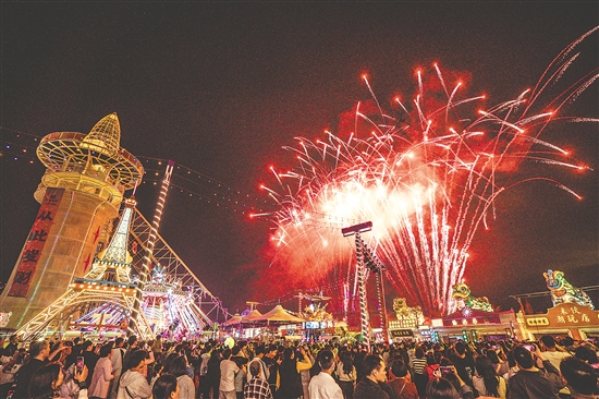 春节期间,位于开平市赤坎镇的“梦回开平·侨海华韵”不夜城(以下简称“开平不夜城”)化身为欢乐的海洋。今年春节,该景区倾力推出“中国年·看赤坎——来开平不夜城过大年”新春主题活动,以沉浸式体验和全天候演艺为游客献上一场“食玩一体”的新春盛宴。景区实行免票入园,吸引了来自大湾区乃至全国各地的游客,日均客流量约2万人次,初三初四迎来客流高峰。