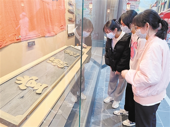 市民游客参观位于侨博馆“唐人街”展厅的遡源堂牌匾,了解背后的故事。