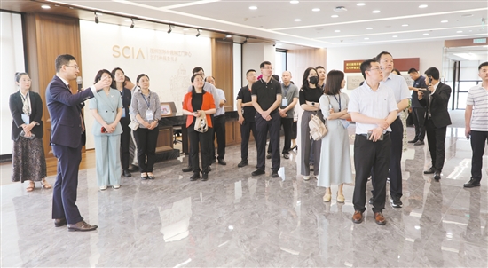 与会代表在深圳国际仲裁院江门中心听取相关介绍。