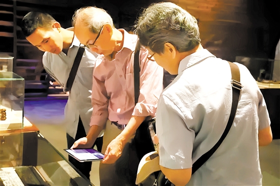 司徒参勤(中)在开平市博物馆1号展厅参观。