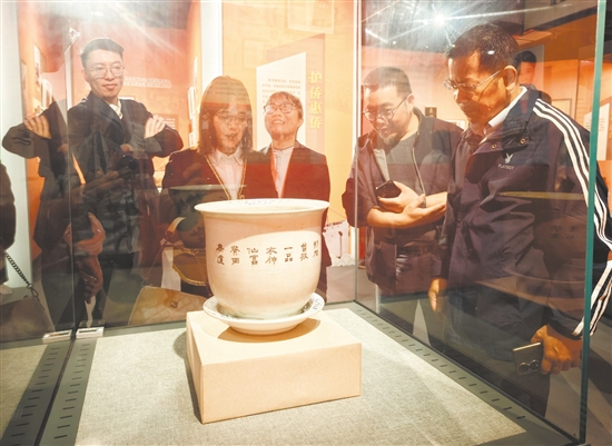 市民正在参观“周恩来总理1958年送给印尼归侨关崇涧的花盆”。郭永乐 摄