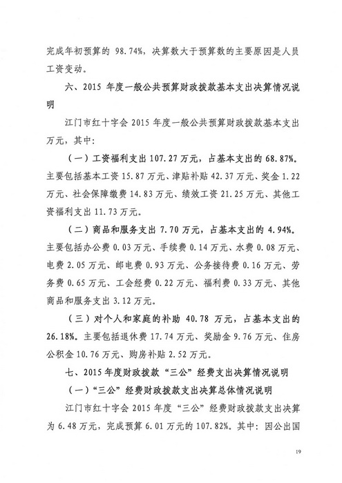 2015年开云电竞官方网站红十字会部门决算