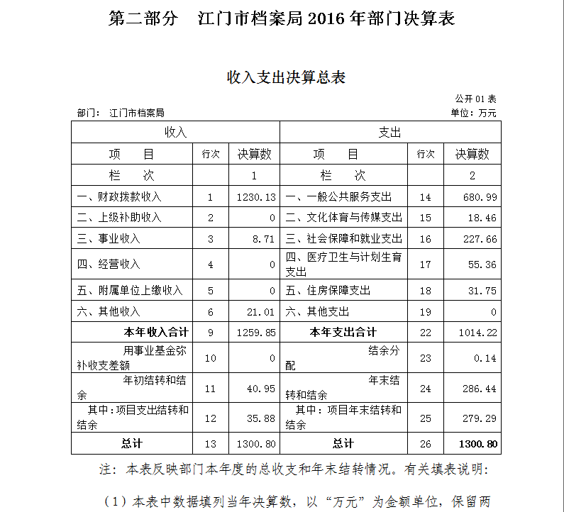第二部分 开云电竞官方网站档案局2016年部门决算表