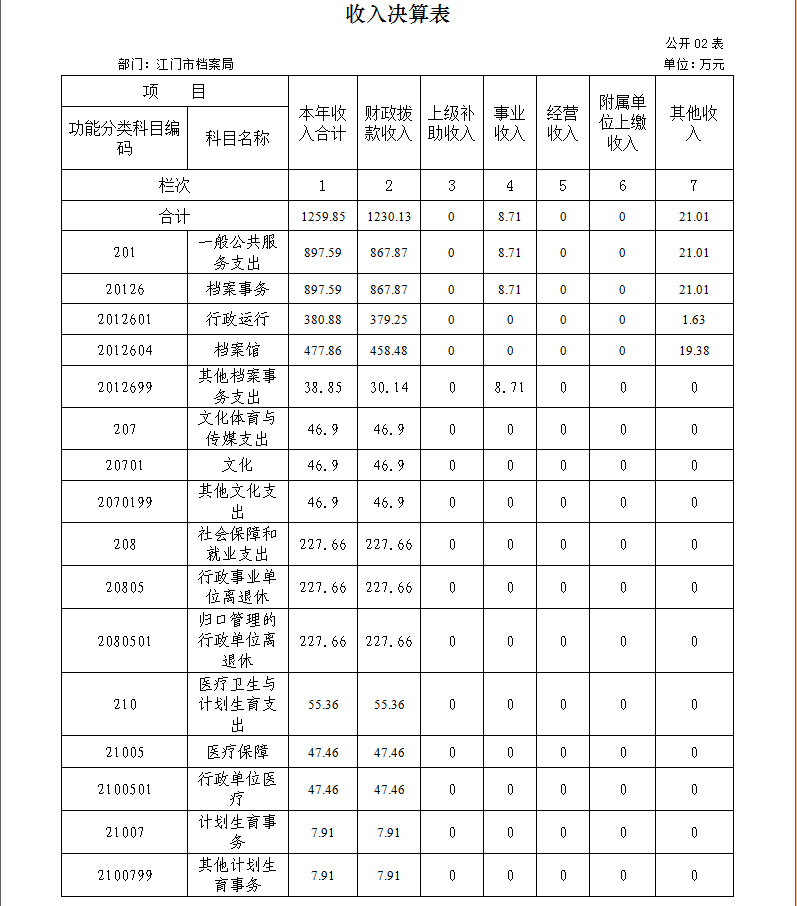 二、收入决算表