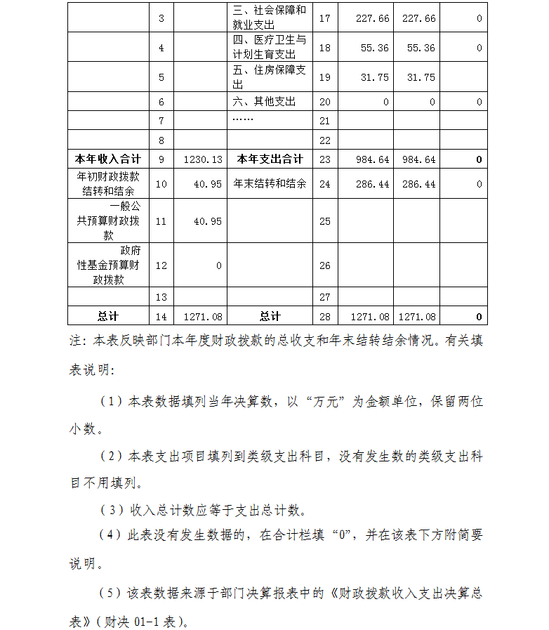 四、财政拨款收入支出决算总表