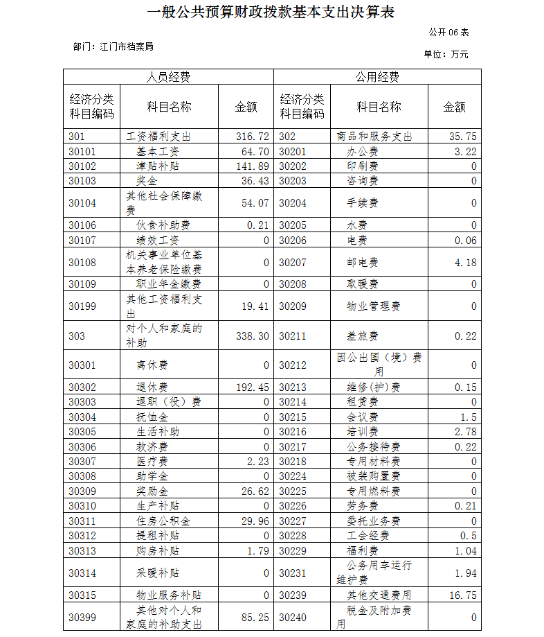 六、一般公共预算财政拨款基本支出决算表