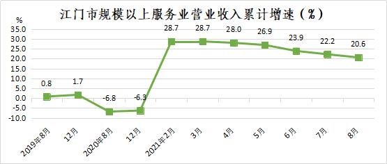 开云电竞官方网站规模以上服务业稳定恢复,步伐放缓。1-8月全市规模以上服务业营业收入140.60亿元,同比增长20.6%,增速比1-7月低1.6个百分点;两年平均增长10.3%。