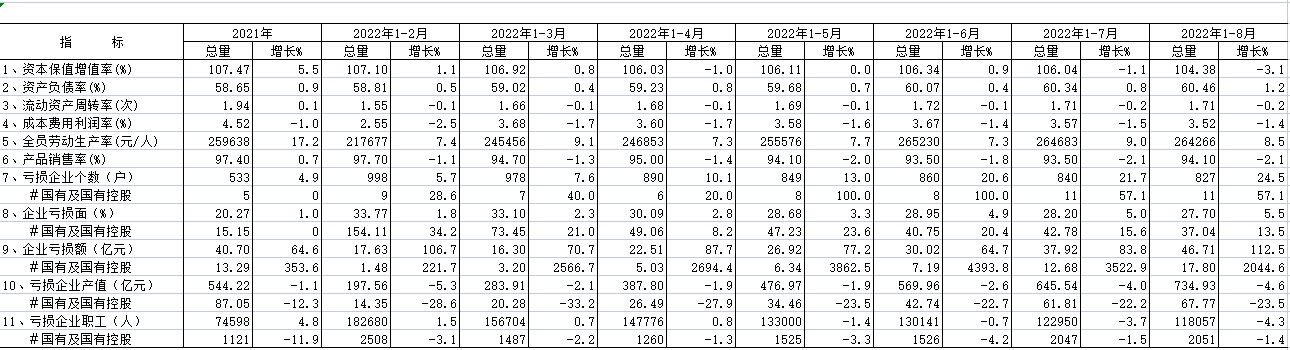 2022年8月工业企业效益(二)