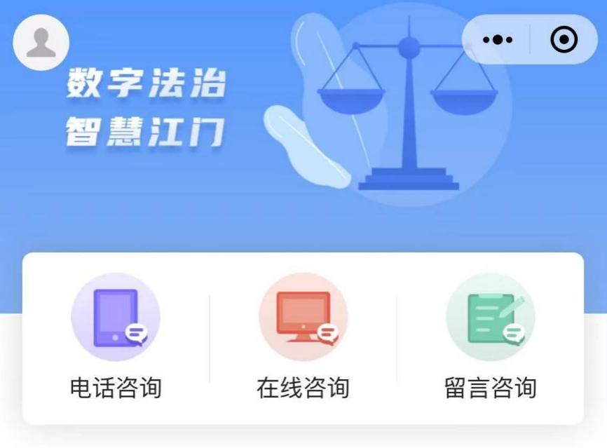 “江门智慧司法”小程序为群众提供三种咨询方式:电话咨询、在线咨询及留言咨询。点击在线咨询,值班律师立刻“现身”,主动为您提供服务。